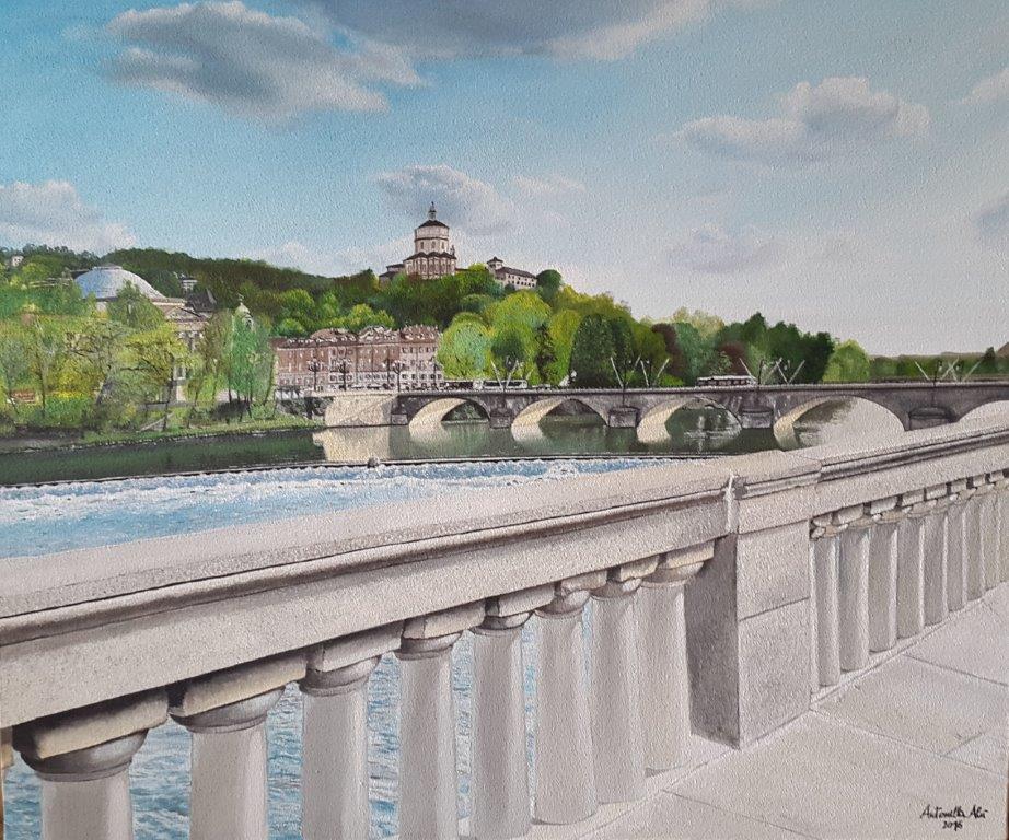 IL PONTE VITTORIO EMANUELE I A TORINO, PASTELLI MORBIDI SU CARTA, 25X45