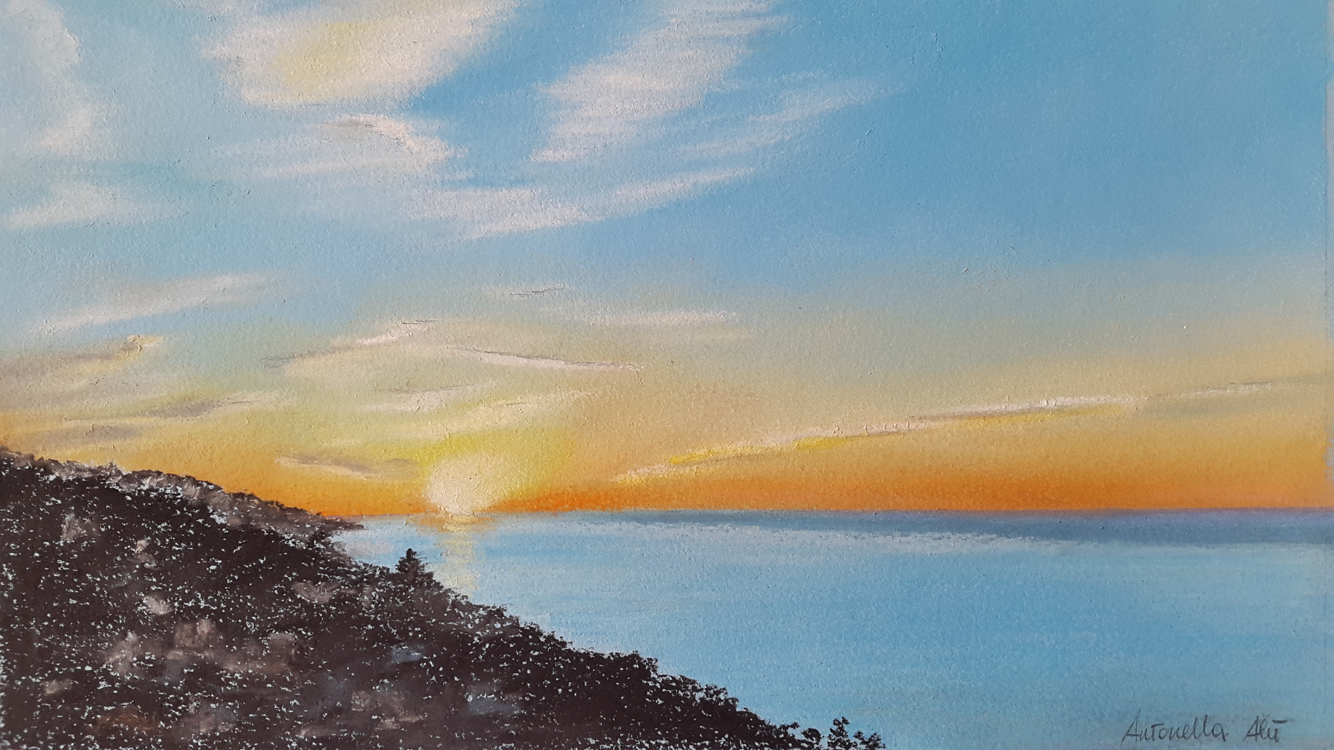 Il tramonto su Acquedolci, Sicilia, 20x30, pastelli morbidi
