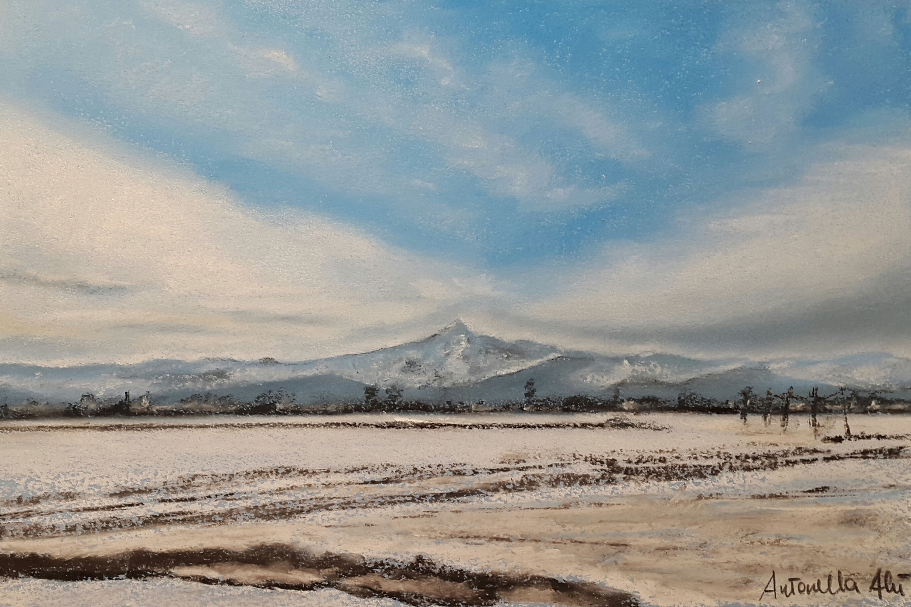 Paesaggio invernale piemontese pastelli morbidi su carta Canson 220 gr 20x30